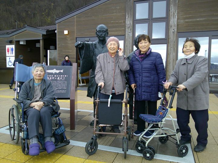 11/13新しく出来た十和田湖の道の駅に行ってきました。 2025-11-28 最終更新日時 : 2025-11-28 医療法人翠峰会 いこいの里 入口の銅像の前で記念撮影! 道の駅店内にはいろいろな品物が並んでいました。 商品を手に取ったり、店内を見て回る姿はとても楽しそうでした。 展示スペースもあって、資料を真剣に読む姿も見られました。 昼食は、かづのふるさと学舎(旧鹿角市立中滝小学校)カフェこもれびで、持参したおにぎりと豚汁を食べました。 どこか懐かしい学舎の中で、昔話などをしながら楽しそうに食べられていました。『長生きして、また来たい』と言って下さる方もおりました。
