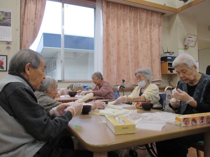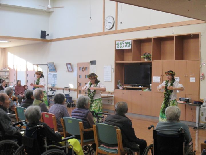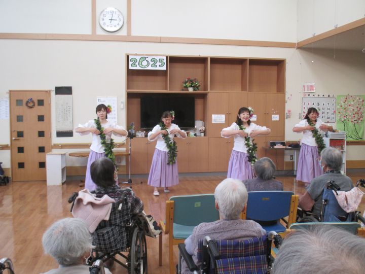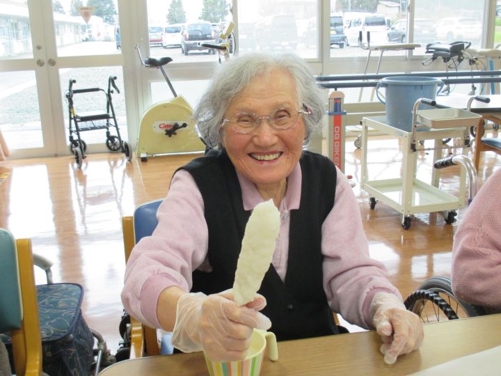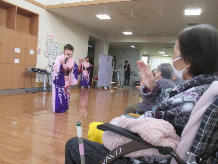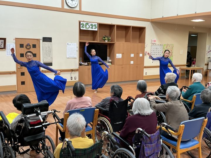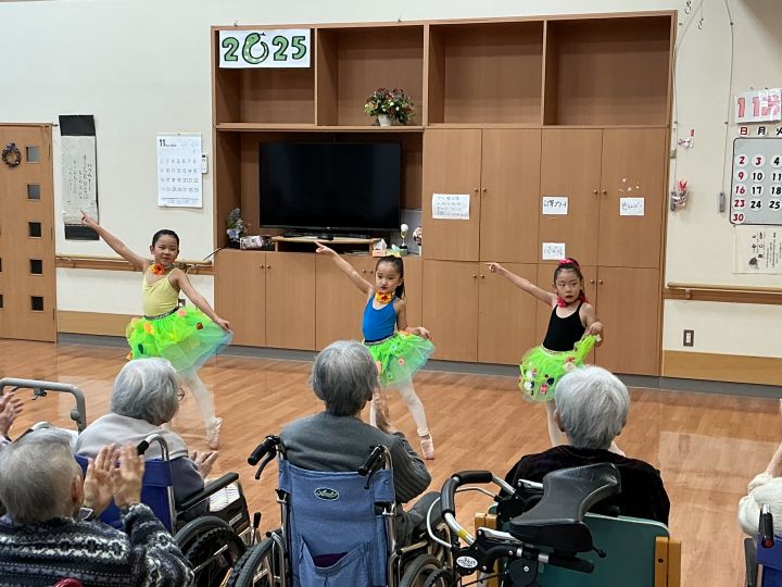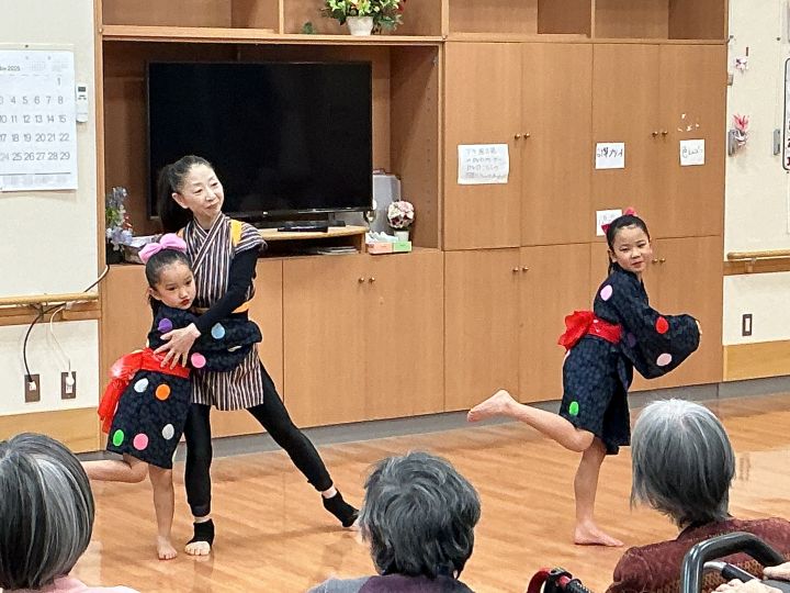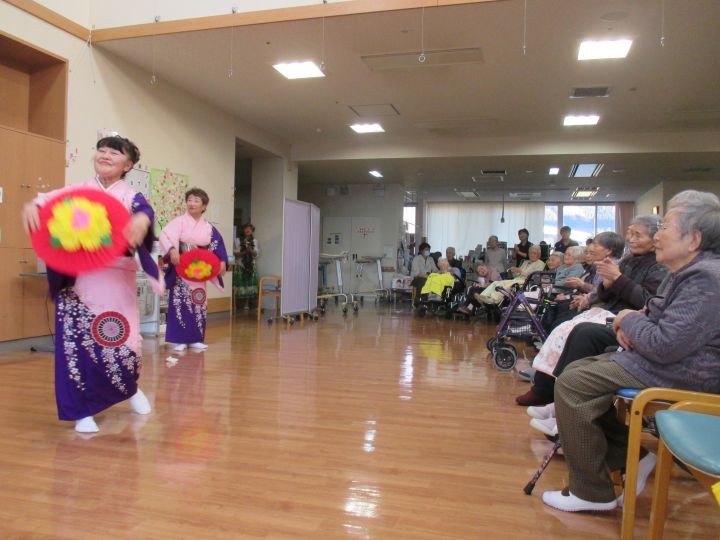 11月も沢山の行事がありました。 2025-11-28 最終更新日時 : 2025-11-28 医療法人翠峰会 いこいの里 11/9に「Мモダンダンスカンパニー」の皆さんからバレエを披露して頂きました。 子供達がいるだけで、皆さん大喜びです! しなやかな動きに感動しました。 『子供たちが上手で可愛くて良かったです。』 一緒に手踊りを楽しまれるご利用者も見られました。また来てくださいね! 11月11日はきりたんぽの日です。ということで先月に引き続き、この日もきりたんぽ作りを行いました。 『この前も作ったからコツを覚えたよ!』 『ほら!食べろ!いっぺあるから!』 『昼まで我慢できないな~』 昼食に皆さんで美味しく頂きました。 『大しためぇ~』 『つゆが良くしみ込んでらぁ』 『最高!』 秋は芸術を楽しむ季節です。ということで11/16にはなまる会さんの慰問を楽しみました。 花笠音頭の花笠がひときわ鮮やかでした。 『さぁ!皆さんもご一緒に!』 優雅な踊り、皆さん見入っています。 様々な踊りで楽しませて頂きました。