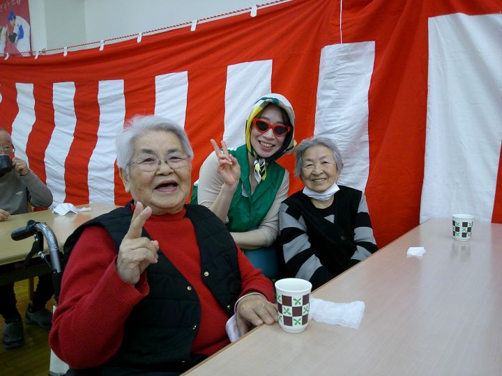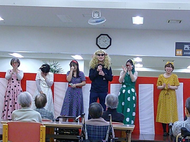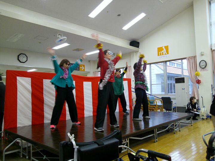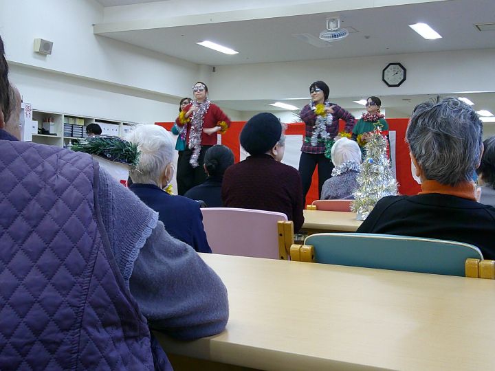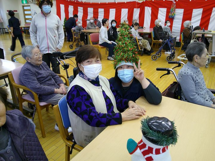 12月25日に行ったクリスマス会の様子をお知らせします。 2026-01-10 最終更新日時 : 2026-01-10 医療法人翠峰会 いこいの里 まずは、行事食の幕の内弁当。ケーキが美味しそうですね。ケーキから食べ始める方もいました。好きな物から食べる派ですね。私は、好きな物は最後に食べる派です。 クリスマスツリーの飾りを帽子にして被ってみました。頭を振ると、落ちるので注意が必要です(笑) 職員による余興でクリスマス会を盛り上げます。まずは、ケアマネージャーさんたちによるダンシングクイーン。 私の担当ケアマネは、何処かなぁ。 続いては、デュエット。「銀座の恋の物語♪」 通所リハビリの誇る、美女軍団による「ピンクレディメドレー」時々キャンディーズも混ざっていたような気がする… 金髪美女!?の乱入です。 いやぁ、楽しかった。踊り上手ねぇ。 クリスマス会は、皆さんの笑い声が絶えない楽しい物でした。次回は新年会の様子をお伝えします。お楽しみに!